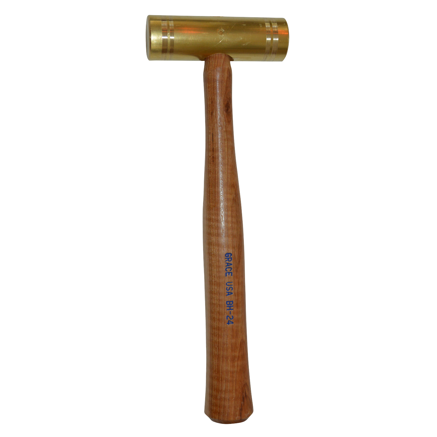 GRACE USA 24 ounce Brass Hammer is precision manufactured and hand assembled entriely within the USA. The brass head is hand turned (the ole fashion way, one at a time) from CDA 360 brass rod, extruded in a USA mill, and beautfully hand polished. A properly seasoned, turned in the USA, hickory handle is then pressed into the finished brass head and securely brass pinned. This hammer is a work of art yet designed to serve the professional or hobbyist woodworker, mechanic, and machinist with years of hard use. GRACE USA products are proudly 100% Made in the USA.