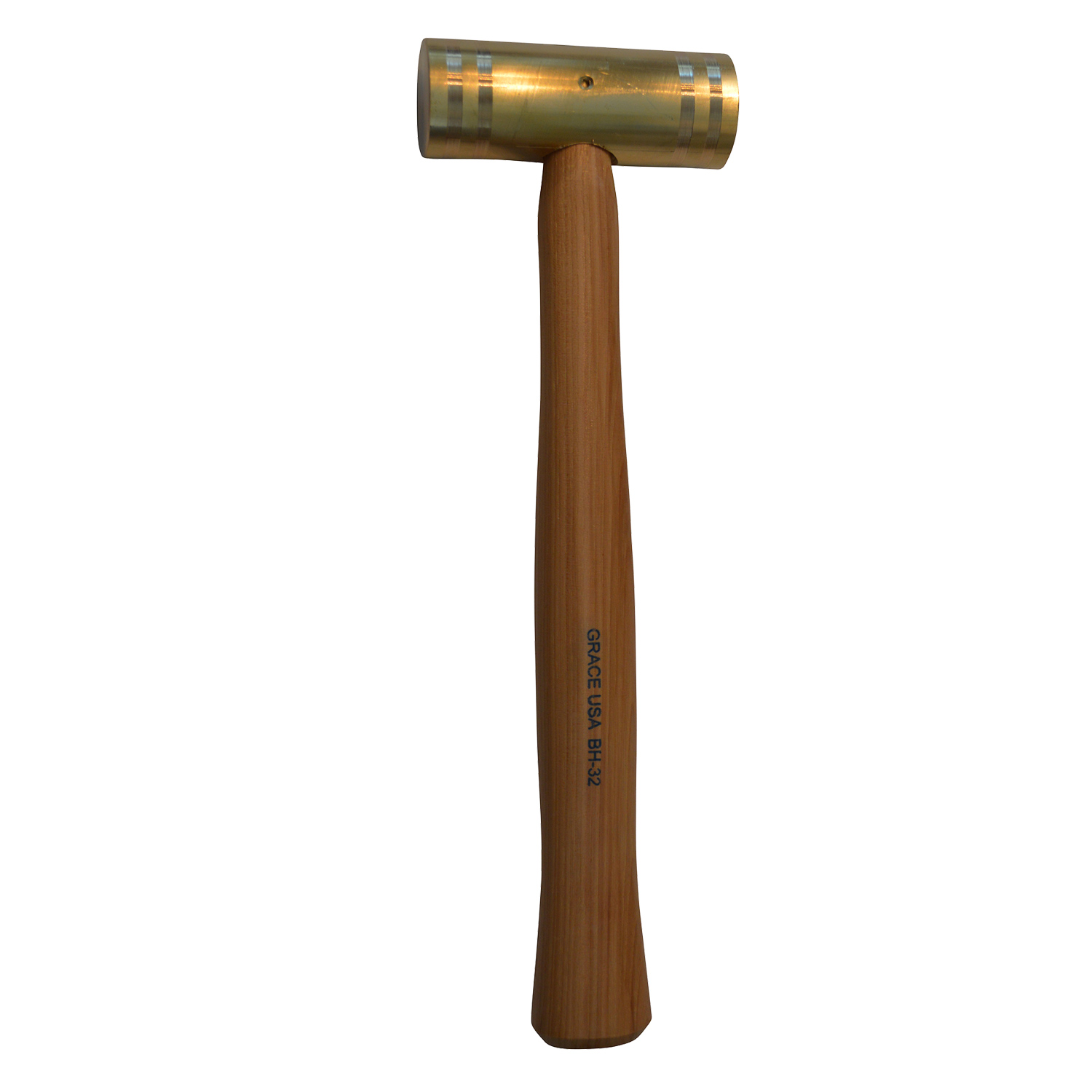 GRACE USA 32 ounce Brass Hammer is precision manufactured and hand assembled entriely within the USA. The brass head is hand turned (the ole fashion way, one at a time) from CDA 360 brass rod, extruded in a USA mill, and beautfully hand polished. A properly seasoned, turned in the USA, hickory handle is then pressed into the finished brass head and securely brass pinned. This hammer is a work of art yet designed to serve the professional or hobbyist mechanic and machinist with years of hard use. GRACE USA products are proudly 100% Made in the USA.
