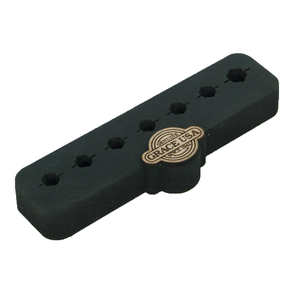 Grace USA Bench Block Tool Holders are designed specifically for each tool so that they are neatly kept in order and are readily accessable when needed for a specific task. Each Bench Block is made out of 60 durometer Neoprene rubber. Neoprene rubber is a general purpose compound that offers excellent oil resistance and chemical stability, as well as vibration dampening. Neoprene will remain stable over a wide temperature range. Made in USA