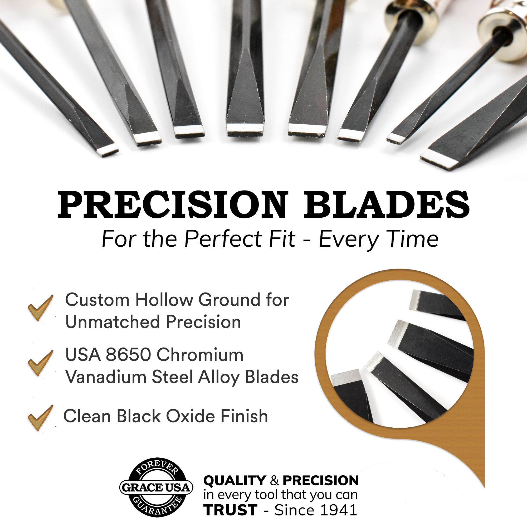 A TRADITION OF EXCELLENCE SINCE 1941: Since being founded in 1941, every tool that has been produced by Grace USA has undergone a rigorous inspection process which helps ensure genuine QUALITY and PRECISION in every tool that you can TRUST.