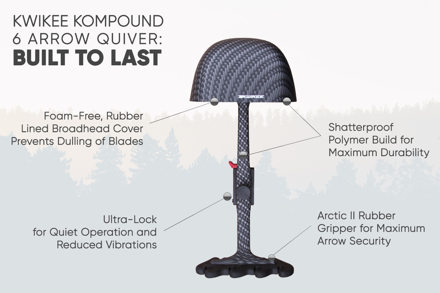 | Bulletpoint 4 | WORRY-FREE ARROW SECURITY: Our proprietary Arctic II rubber gripper is designed to stay pliable in a wide range of temperatures and securely holds arrows, removing worry about slips so you can focus on what's important |